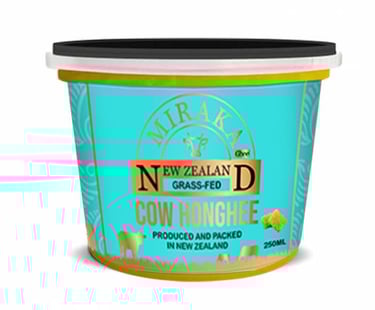 Grass-fed ghee crafted in New Zealand’s lush pastures.